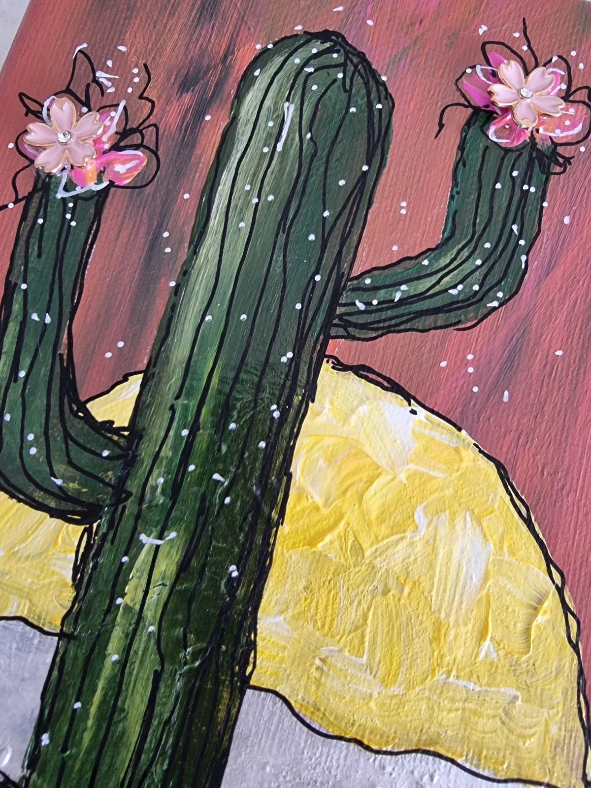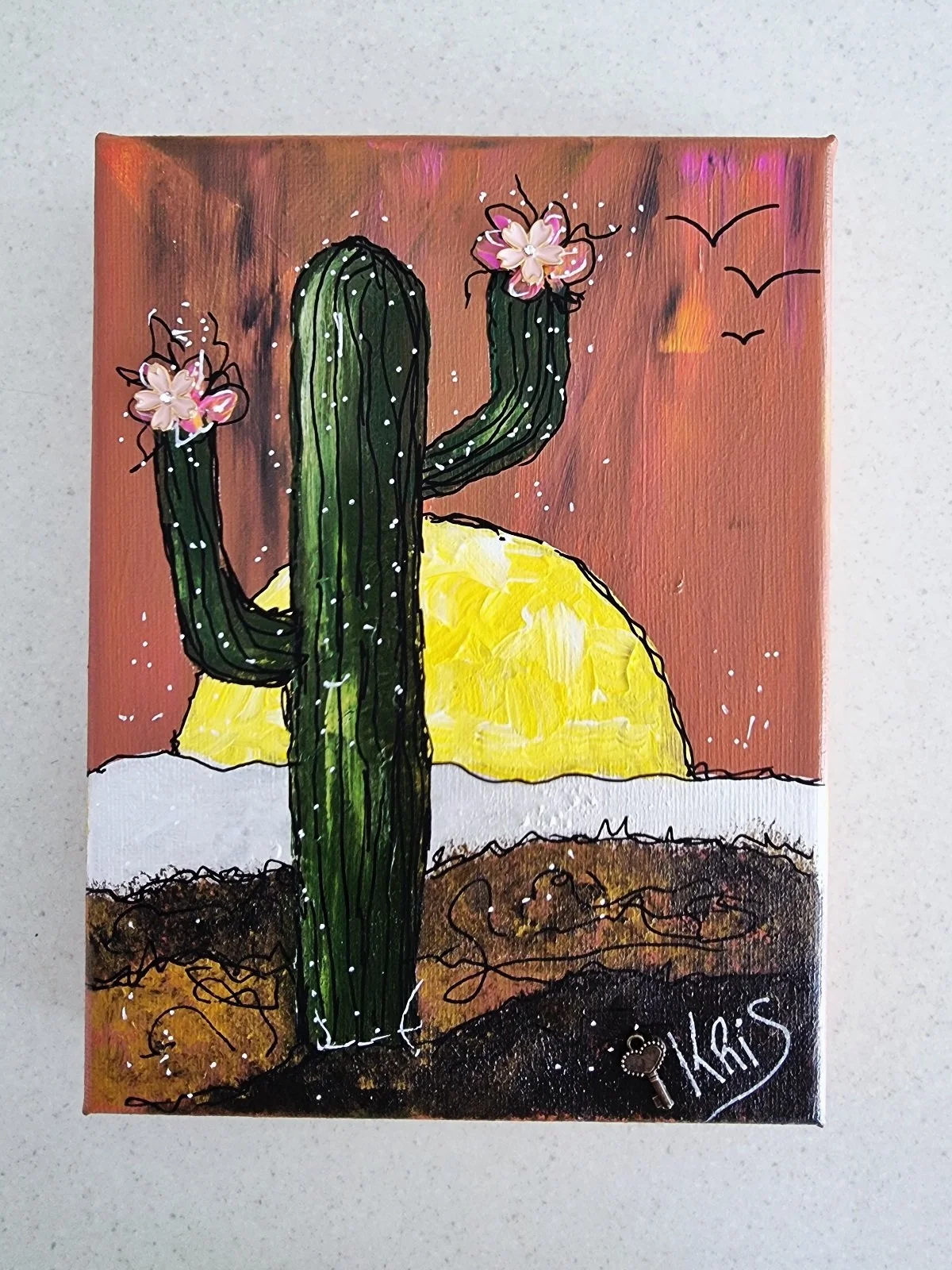No two paintings are ever the same — each cactus tells its own story of growth, endurance, and bloom amidst life’s sandy landscapes.