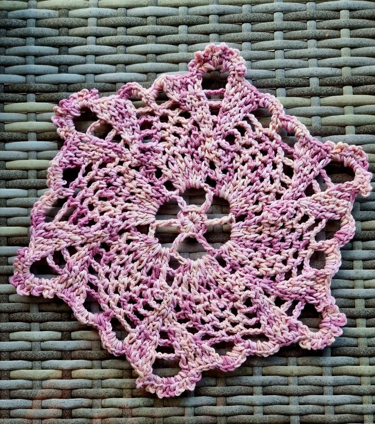 Pink Print Crochet Doily – by Groovy Granny